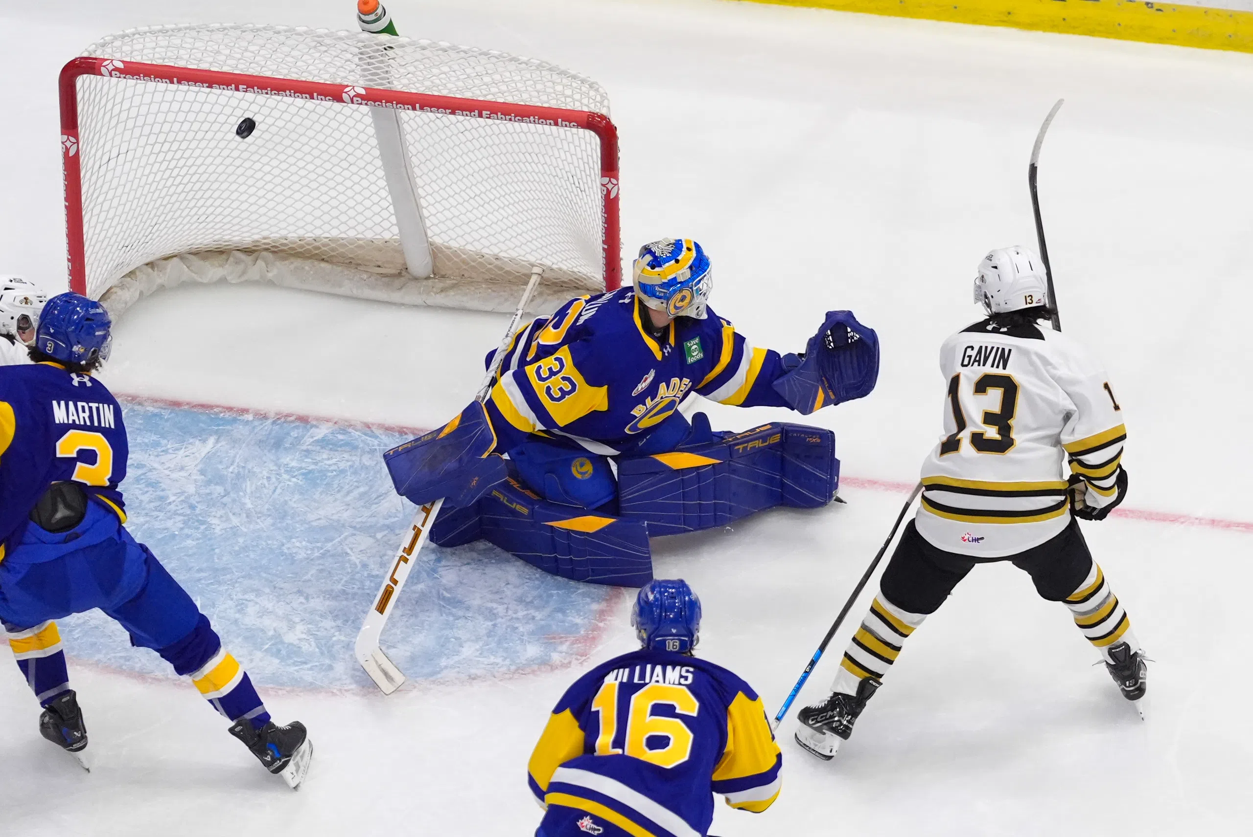 Though the Wheat Kings held the early edge in shots, it was the Blades who struck first. Jordan Martin spun a pass our front from the bottom of the left circle, and it went across the crease right to a waiting Hunter Laing, who lifted home his 13th.