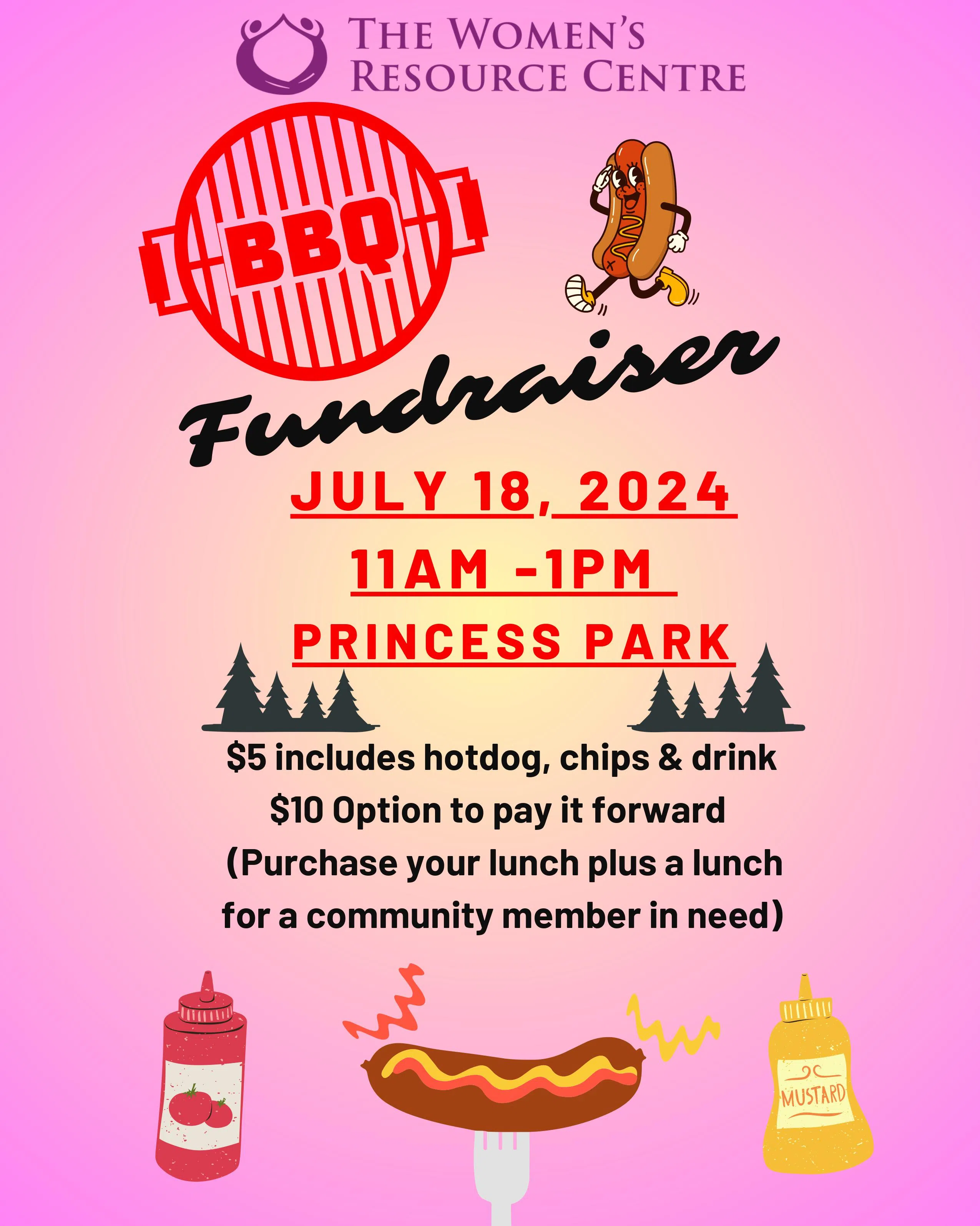 The Women's Resource Centre is hosting their annual BBQ and raffle fundraiser on July 18th at Princess Park. BBQ 10:30 a.m. to 2:30 p.m. Hot dogs, chips, drinks $5, plus raffle with tons of great prizes! All the money raised helps us put on programs and offer services for women who have experienced Family Violence and Sexual Assault.